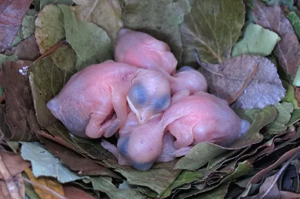 Hatchlings are not feathered (may have some fluff) and eyes are often not yet open.